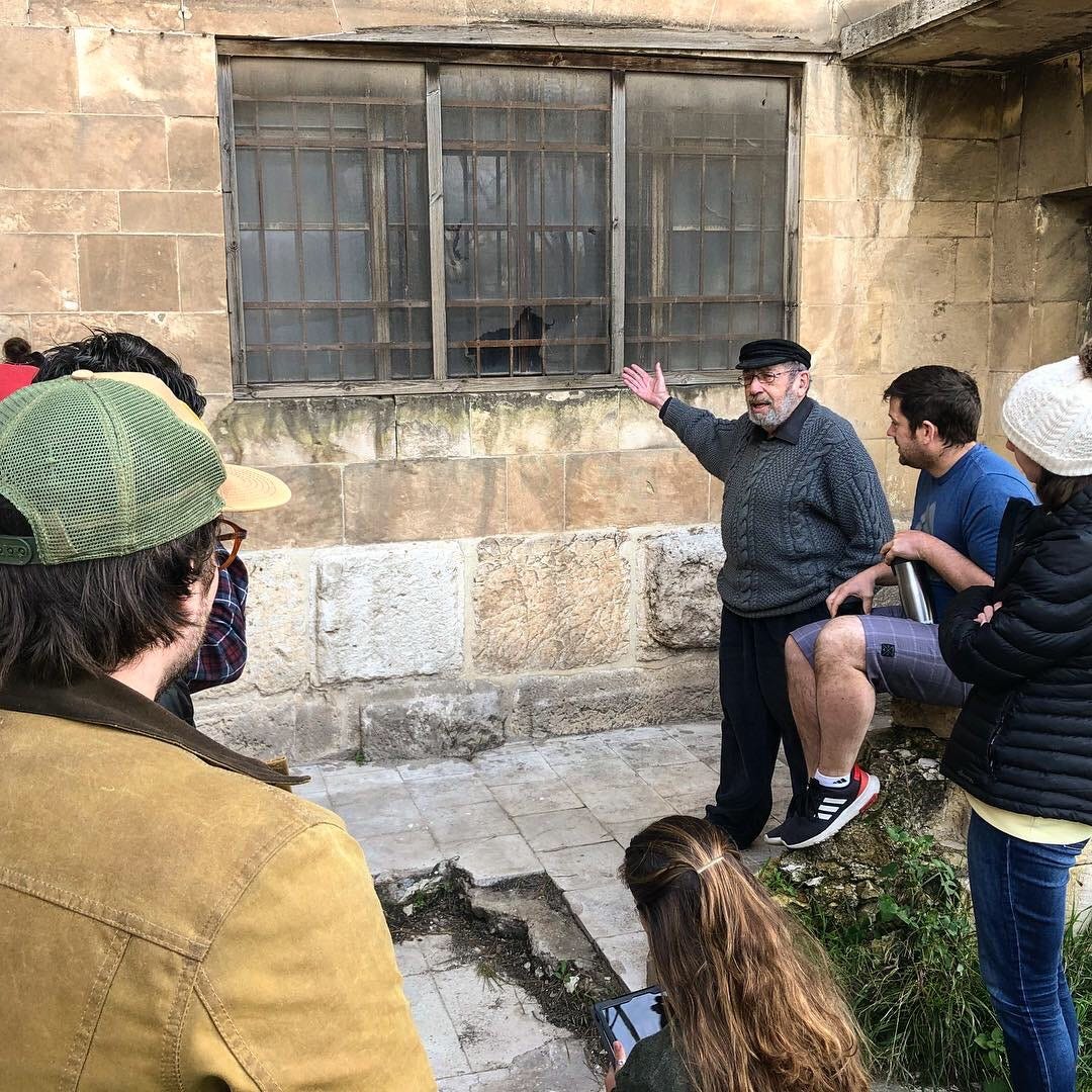 The real reward was sitting in the classroom and absorbing Gaby’s lectures, which were void of any visual presentation and given on the basis of his memory and a short stack of notecards he held in front of him. Occasionally, he would stand up to write names or draw objects on the whiteboard. At the opening of every lecture, he would ask if there were questions about any topic, whether relevant to the course or not. One class session, I asked him about the Garden Tomb, and he proceeded to share for the next 45 minutes. Extended Q&A meant that he never covered the full course content during any semester (or so I’ve been told). But it encouraged me to be seriously engaged, both in the library and the field, so I didn’t waste the opportunity to get his input about any issue that that might pique my curiosity. He was not as mobile as he had been during his younger days, but I was also able to experience some field excursions with him to places like the Ecole Biblique, Sanhedria, and the Third Wall.